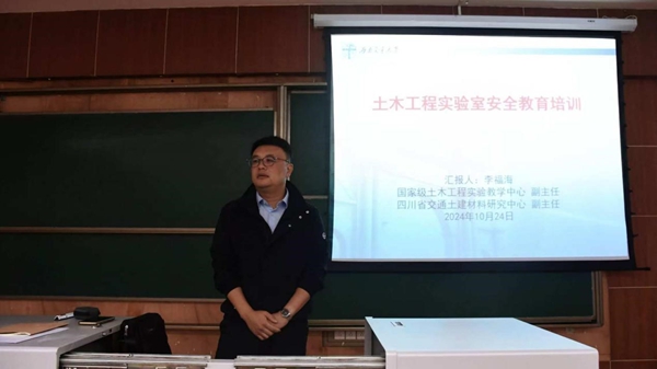 在教学楼J4104成功举办了实验室安全教育培训活动。此次培训由学院实验教学中心副主任李福海主讲,土木工程各专业研究生参加了此次培训。