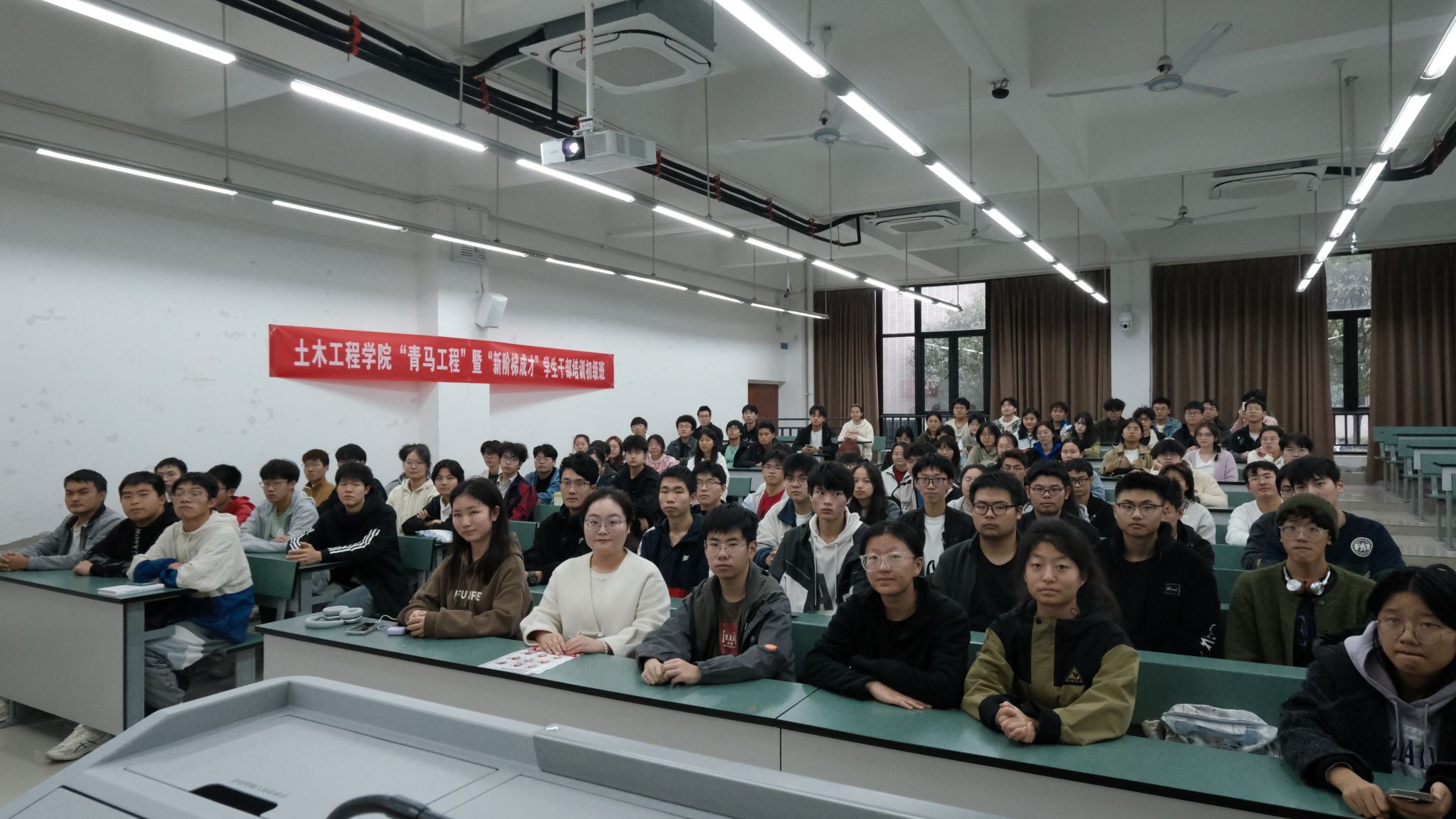面向全体学员开展了“党的二十大精神、习近平新时代中国特色社会主义思想及爱国荣校”专题教育学习,主讲老师为土木工程学院青年讲师团成员、2024级辅导员——杜树碧老师和侯益平老师。面向班团干部开展“新生班团干部理论素养和能力素质提升”专题培训,主讲老师为土木工程学院青年讲师团成员、2024级辅导员——黄静汶和谭力豪老师。面向团学组织干事开展“新生团学组织干事能力素质提升”的专题培训,主讲老师为土木工程学院青年讲师团成员、2024级辅导员——张津毓老师。