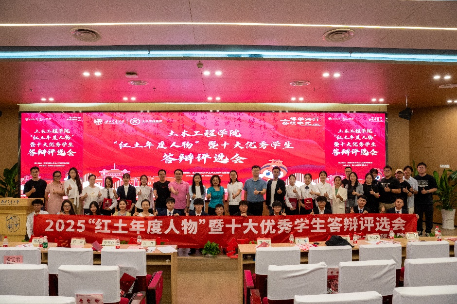 团委主办、学业与发展指导中心承办的2025“红土年度人物”暨十大优秀学生答辩评选会于图书馆1号报告厅顺利举行。学院党委书记郑江、学院党委副书记刘萍、副院长于丽、道路与铁道工程系本科教学负责人任东亚、岩土工程系本科教学负责人冯君、学院研究生党总支书记石莹以及 艳母