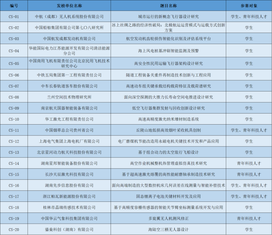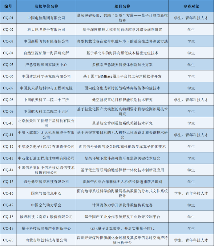(2)题目名称、发榜单位及参赛对象: