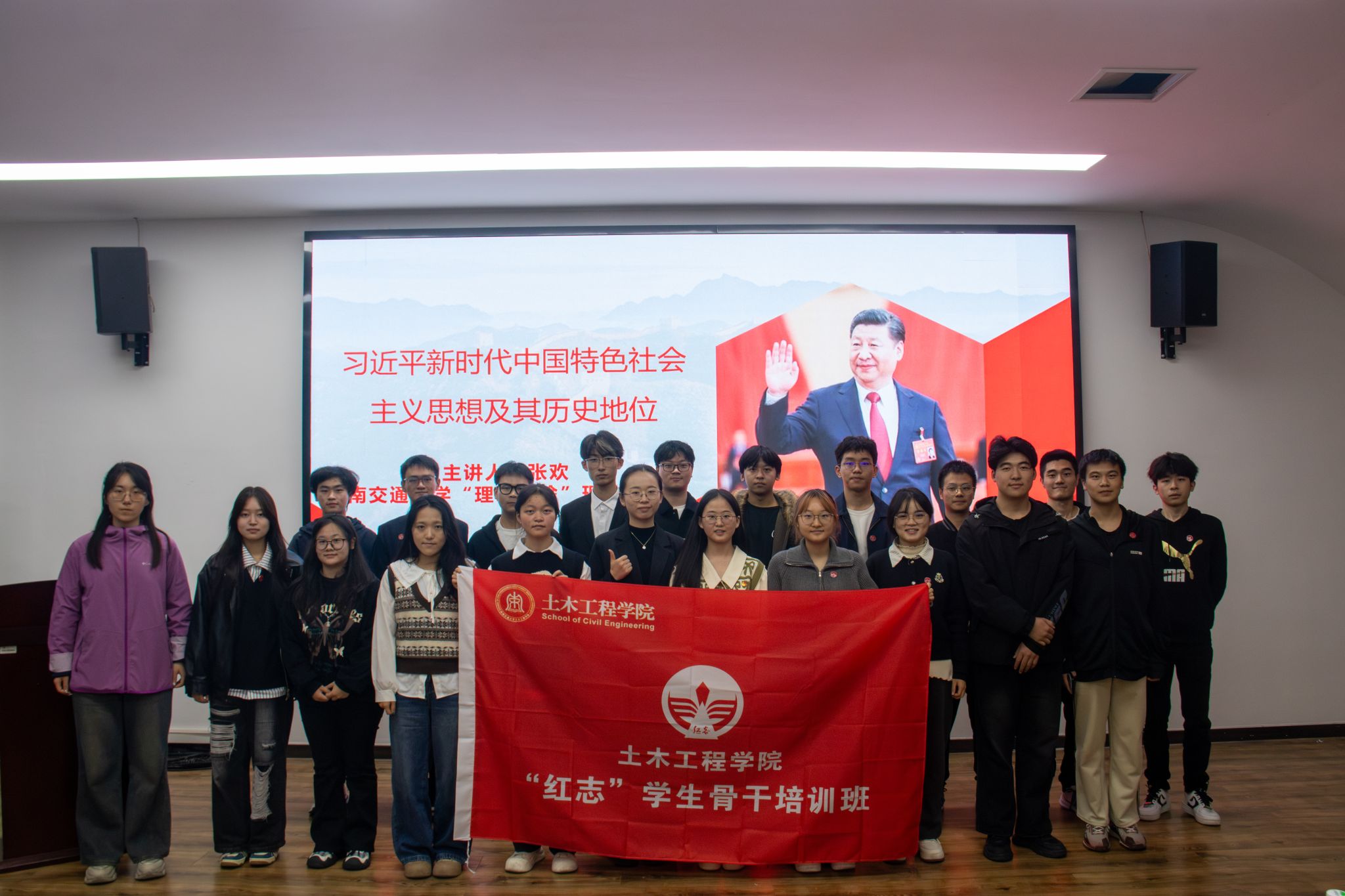 “红志”学生骨干培训班(第六期)有幸邀请到西南交通大学“理响红途”理论宣讲团成员张欢老师,在X4407教室开展“习近平新时代中国特色社会主义思想及其历史地位”的专题学习。