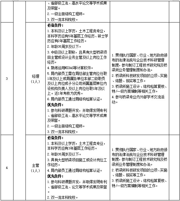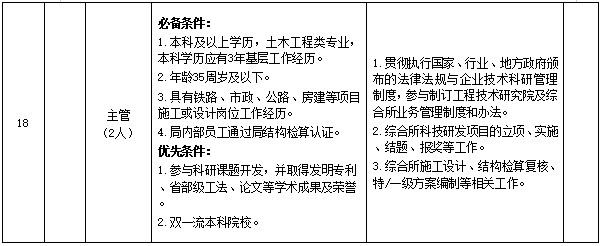 (二)品行端正,事业心、责任心强,能吃苦耐劳,肯钻研,有上进心,热爱和忠诚企业,能严格遵守《中铁四局员工职业道德、行为规范和合规行为准则》,无不良记录。