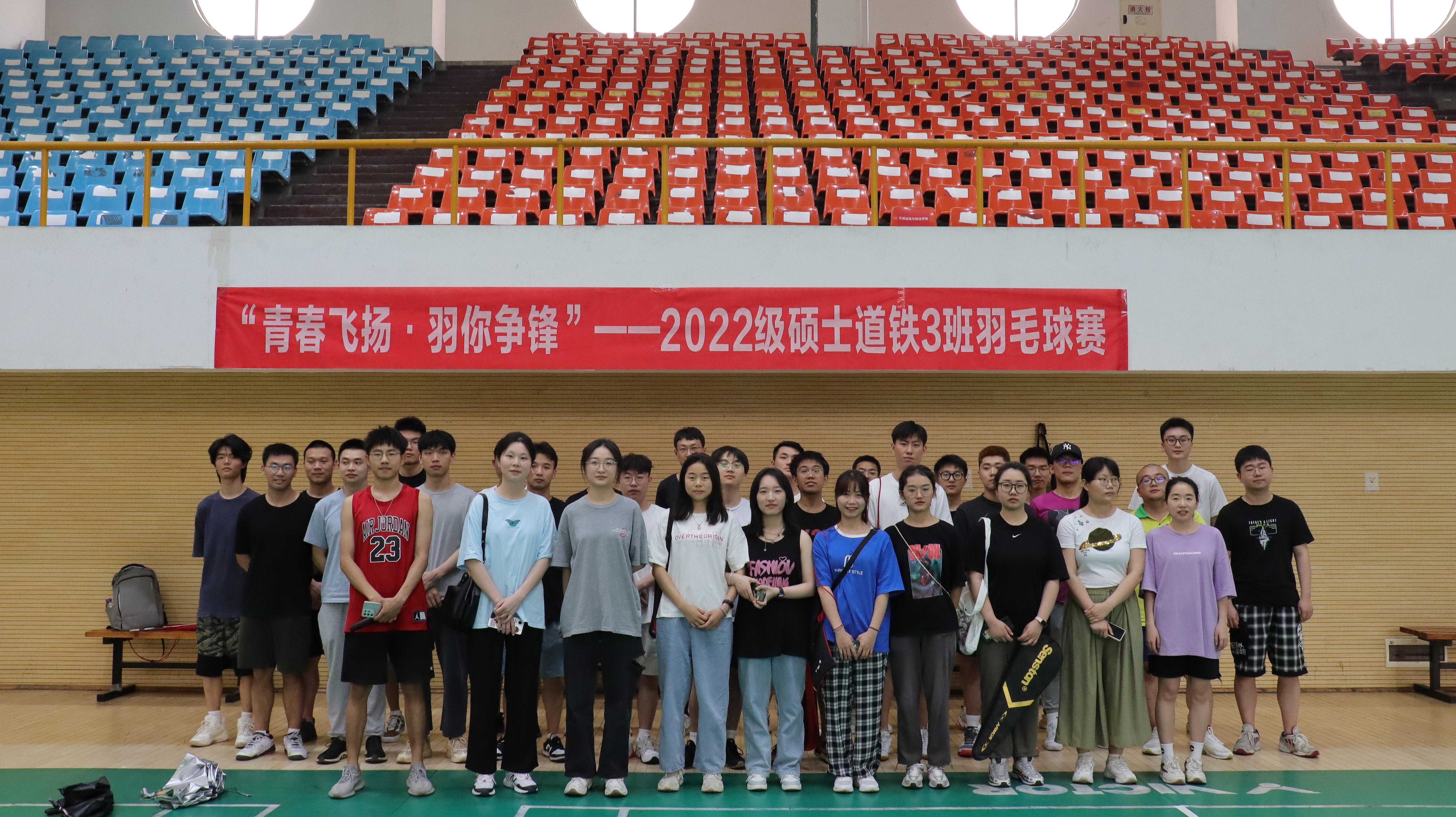 为贯彻落实党的二十大报告中提到的“加强青少年体育工作”,进一步营造共迎大运的良好氛围,响应学校对学生身体素质的要求,帮助同学们在紧张的学习生活之余调节身心、强健体魄。“青春飞扬,羽你争锋” ——2022级硕士道铁3班羽毛球赛于2023年5月19日在西南交通大学九里校区詹天佑体育馆顺利开始赛。本次比赛比赛旨在为*艳母