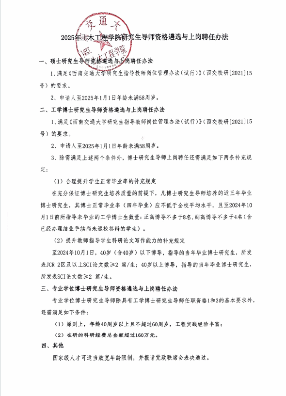 西南交通大学研究生指导教师岗位管理办法《试行》通知