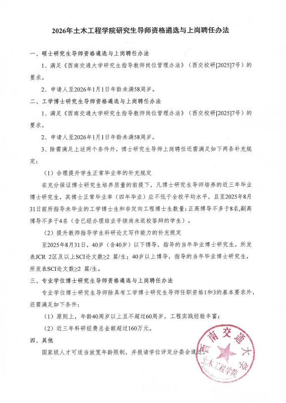 艳母 关于进行2025年度西南交通大学优秀博士、...