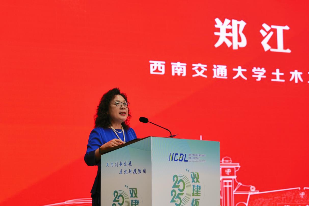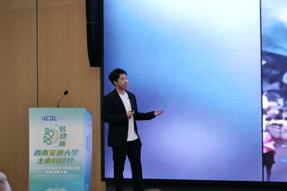 活动伊始,科研院副院长张兴博上台在致辞中对本次比赛的主办方、承办方以及协办方的大力支持表示感谢。张兴博强调,西南交大一直遵循“科研报国”的宗旨,不断推进“科研反哺科普”等一系列活动,鼓励交大学子践行社会使命担当,希望同学们能够做“顶天立地的科学传播者"和"心怀家国的科技播种者”。双建公司董事长张建祥在发言中指出,企业的高质量发展离不开科技创新与科学普及的双轮驱动,此外还肯定了西南交大在交通科技领域的深厚积淀以及在人才培养上的卓越成就,表示未来会进一步深化与高校的产学研合作,推动科学知识转化为生产力,为社会安全和行业发展贡献力量。随后,郑江书记代表学院致辞。她强调,本次大赛主题紧密结合学院特色,通过科普讲解,讲述科学,诠释万物,有力激发大学生创新思维,提升科学素养与实践能力,以此大力弘扬科学家精神。希望本届大赛呈现一堂鲜活生动的“思政课”,把实现中国式现代化的建设场景搬到讲台、屏幕、田园和厂房,让同学们充分领略和感受我国科技发展的蓬勃力量;希望本届大赛的有序组织,成为锻造未来土木工程师的“练兵场”;希望以本届大赛成为一台“播种机”,在同学们心中播下做科学传播使者的种子,做爱科学、讲科学、学科学、用科学的践行者;希望本届大赛成为西南交大和四川双建联袂打造一座校企精准对接的“连心桥”,成为科普事业蓬勃发展的有力支撑,成为建设教育强国、实施科技强国战略的生动实践。她还表达了对所有提供帮助和支持单位及个人的感谢,并祝愿此次大赛圆满成功。