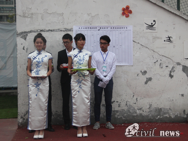 九层之台,起于垒土。每个工作人员的辛勤付出为运动会的圆满结束打下了坚实基础。为保证运动会的顺利进行,学生会各部门齐出,并邀请青年志愿者协会在旁协助。记者从学生会副主席刘畅口中得知,自两周前学生会就开始筹划布置:借用场地、制作海报、统计运动人数、发放班牌……今天正式比赛了,工作就更是忙碌。学生会各部门成员和青协的志愿者们凌晨四点就起来摆放座椅和体育器材,一整天地来回奔波后又要在结束时做收拾整理的善后工作。