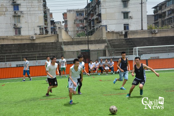 2014级研究生足球赛已经进入第四日的赛程,各组比赛正如火如荼的进行。5月11日中午12:30,由学术桥梁2班和专硕桥梁2班组成“桥家军队”与由学术桥梁1班和学术桥梁3班组成“足球先生队”在球场上展开了激烈的角逐。
