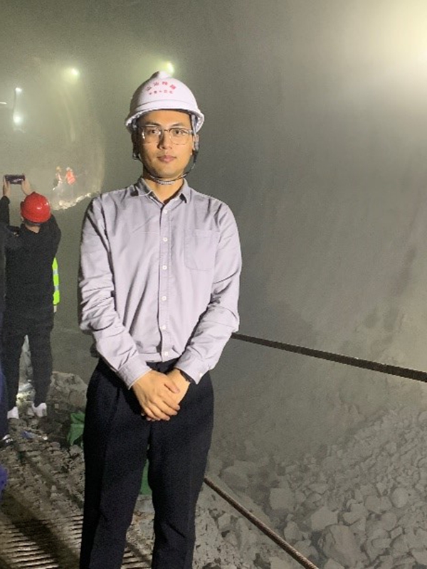 研二时期,他选择的课题是跨断层隧道(洞)错断机理与灾害防控技术。导师耿萍是他选择进入西南交通大学攻读博士学位的重要原因之一,耿老师是隧道抗震领域内的知名专家,拥有丰富的理论水平和实践经验。与耿老师联系后,便获得了耿老师团队的邀请,硕士毕业后如约来到西南交通大学桥梁与隧道工程专业,在耿萍老师指导下继续学习探究。