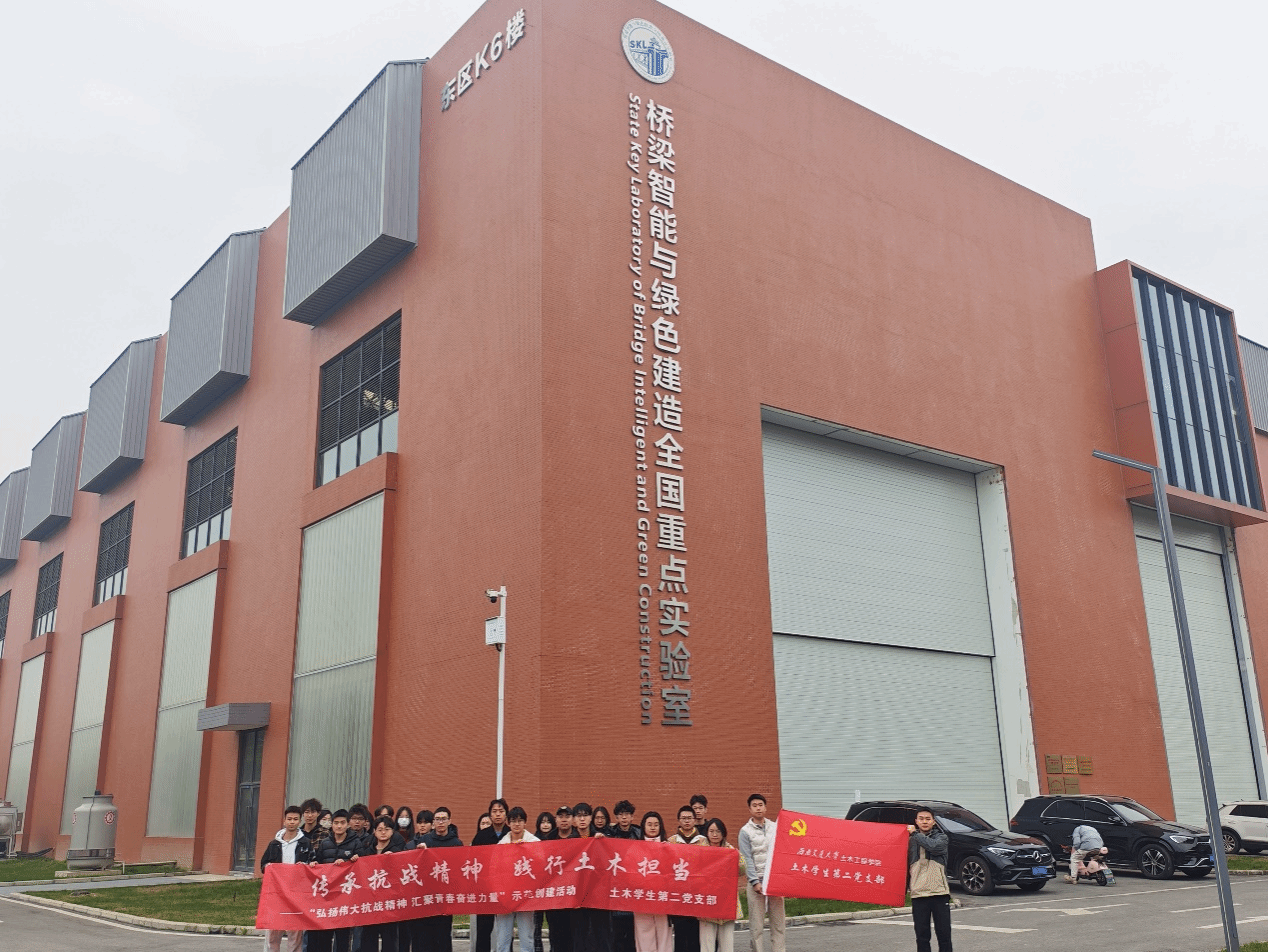 土木学生第二党支部精心组织支部党员与入党积极分子,赴桥梁智能与绿色建造全国重点实验室开展“传承抗战精神,践行土木担当”主题实践活动。本次活动特别邀请实验室张明金老师全程带队讲解,为参与成员提供了兼具深度与温度的专业指导。