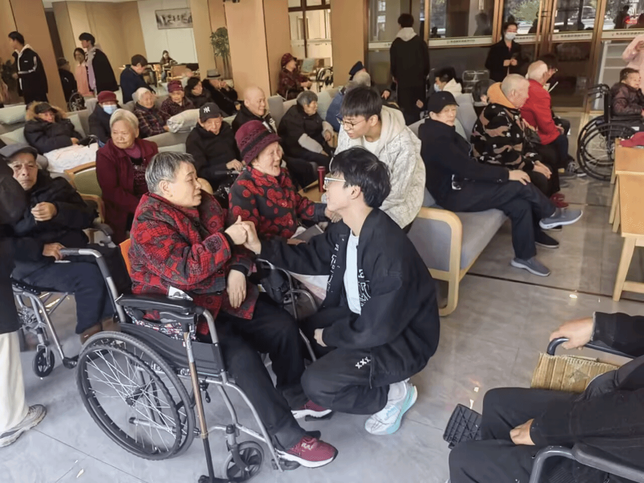 合唱结束后,交流环节温情升级。30余名支部成员与老人围坐成圈,拉着老人的手促膝长谈。同学们耐心聆听老人讲述往昔岁月的奋斗故事、生活中的趣闻轶事,细致询问他们的饮食起居、身体状况及实际需求;老人们则关切地询问同学们的学习生活,分享人生经验。一句句贴心问候、一声声真诚叮嘱,驱散了冬日的寒意。
