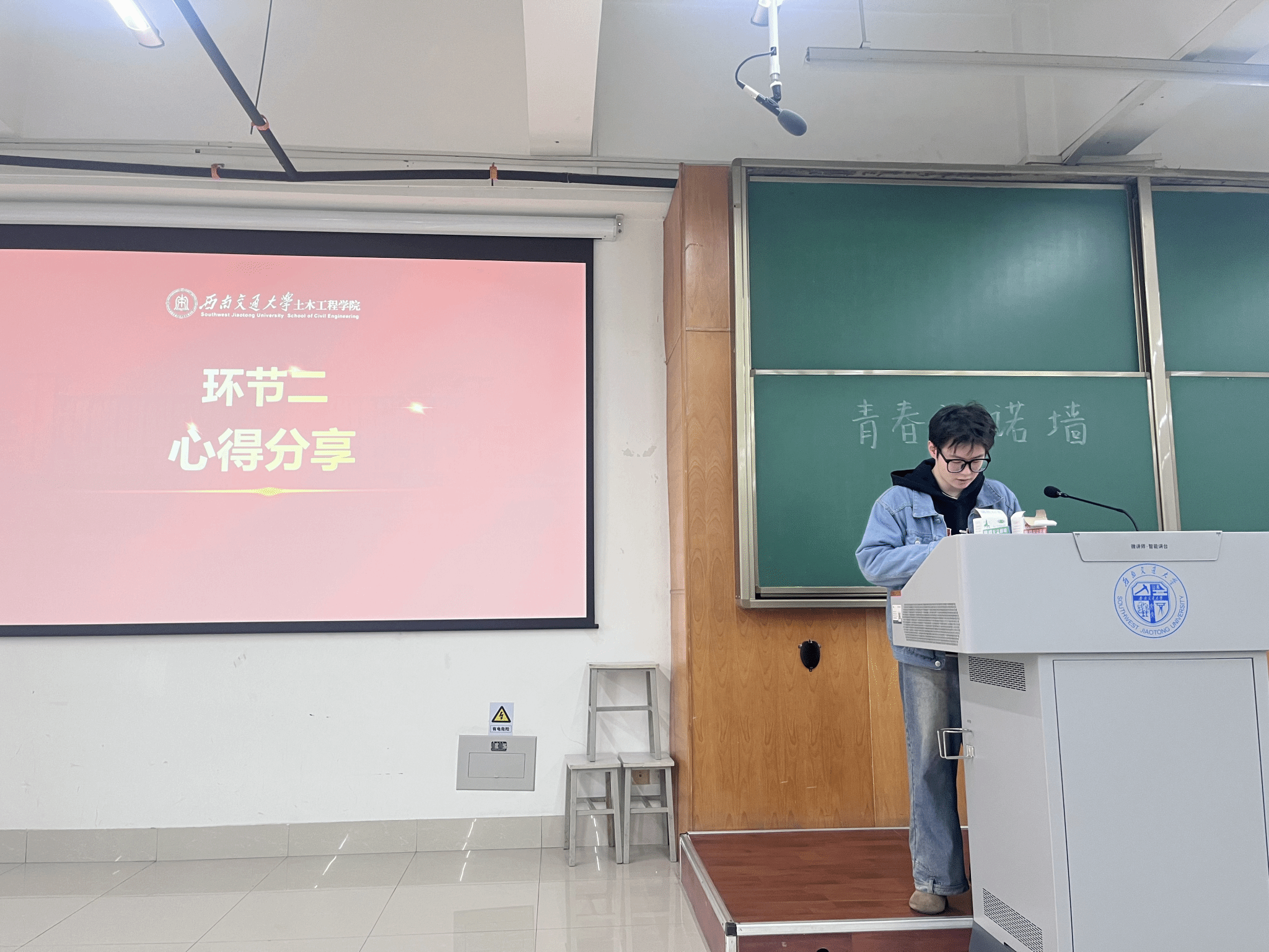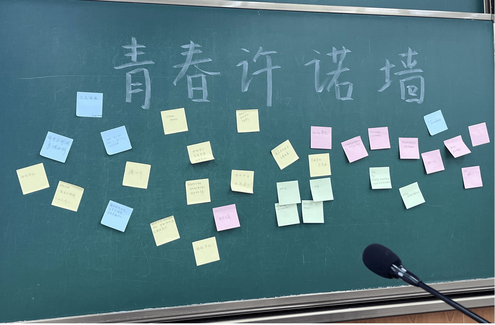 活动尾声的互动环节将氛围推向高潮:支部成员手持彩色便利贴,写下“顺利通过期末考”“顺利完成课程设计”“规律作息睡眠”“坚持运动锻炼”等可落地的践行目标,亲手贴至“青春许诺墙”,多彩便签组成了青年党员的“成长图谱”。