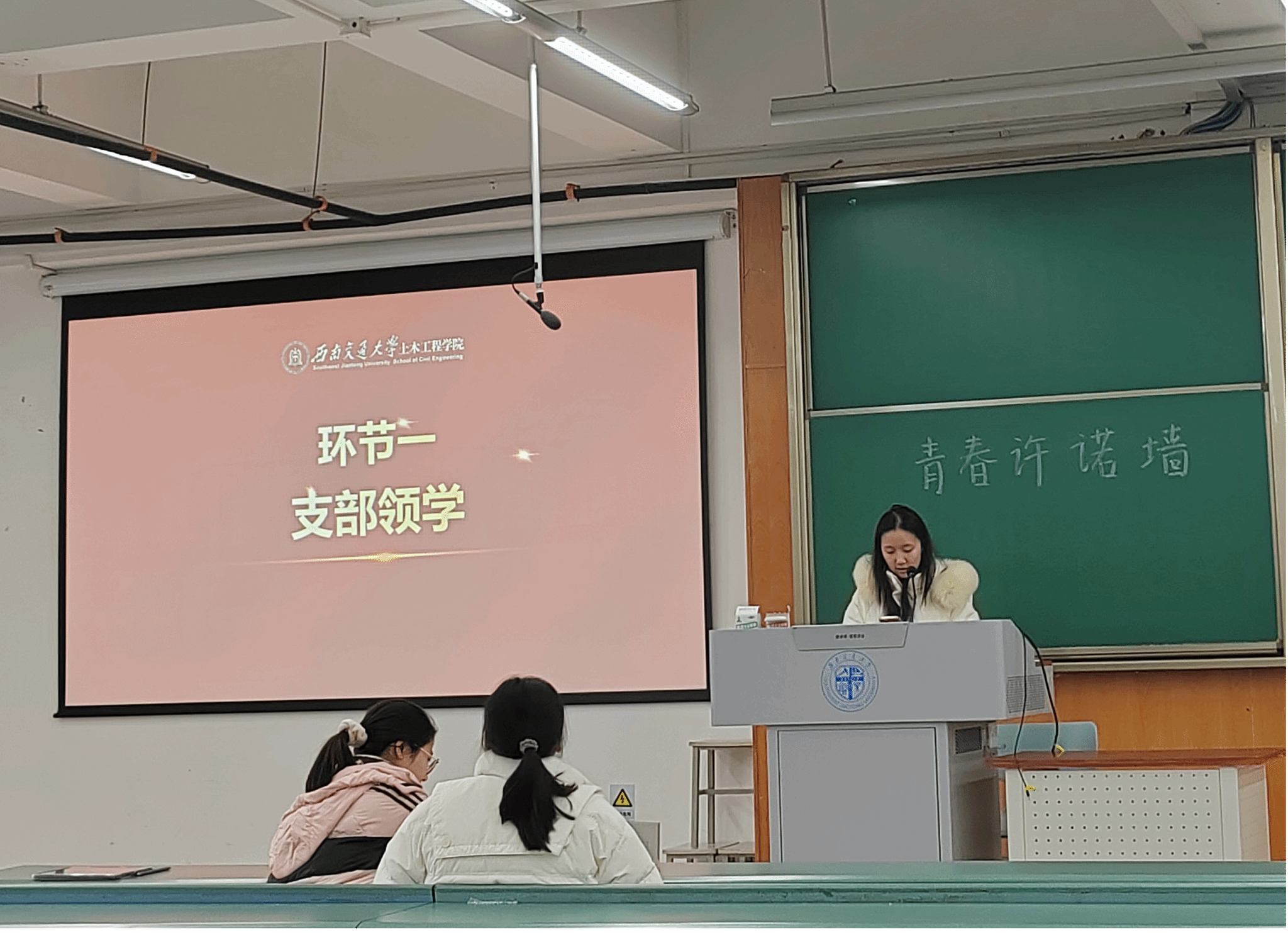 学生造价党支部在X4359教室开展“全会精神领航・青年挺膺担当”主题党日活动。