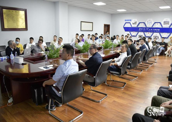 In the afternoon, Professor Yukio Tamura visited the National Engineering Research Center of Land Transportation Geological Disaster Prevention Technology and the Sichuan Provincial Key Laboratory of Wind Engineering at Southwest Jiaotong University (SWJTU). After watching tests on MTS seismic simulation shaking table and wind tunnel test of the aeroelastic model of Shiziyang Bridge, he had a talk with teachers and students on academic research, and shared views on the future development of the laboratory.