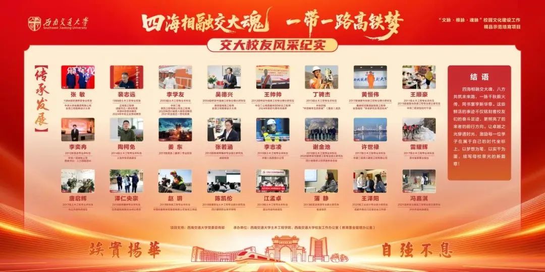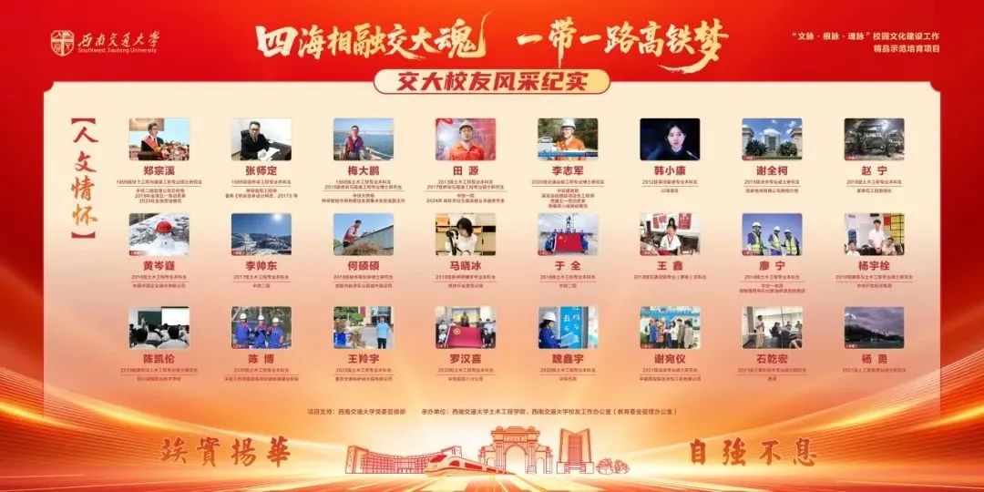 四海相融交大魂,一带一路高铁梦。一百二十九载岁月流转,交大人的足迹遍布山河寰宇。自“四海交大人”影像征集活动开展以来,全球校友积极响应、踊跃参与。27期精心打磨的推送,115位校友的投稿,如同一封封跨越山海的家书,互诉心中的牵挂与思念。200余帧珍贵影像从四海汇聚,从不同维度勾勒出交大人波澜壮阔的精神图谱。如今,在万千交大人的支持和关注下,这次传承交大精神的情怀之旅正式落下帷幕。