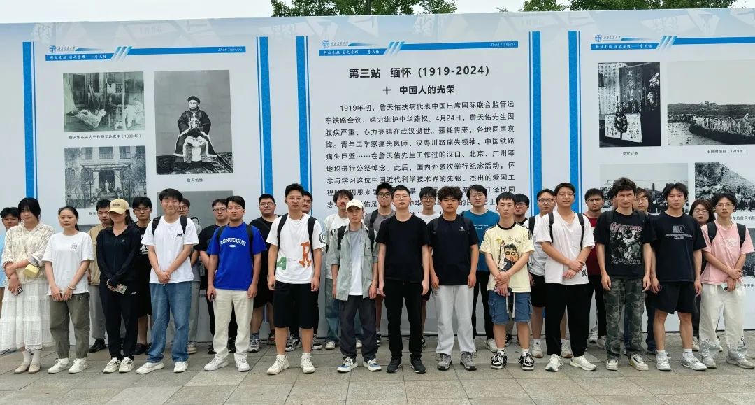 为献礼西南交通大学129周年校庆,弘扬"竢实扬华,自强不息"的交大精神,学院团委组织2022级团员代表,前往图书馆参观“科技先驱 国之荣耀——詹天佑”主题展览和“四海相融交大魂,一带一路高铁梦”摄影展并合影留念。通过学习詹天佑的生平故事和卓越成就,以及观看记录交大校友在世界各地奋斗足迹的珍贵影像,同学们深刻感受到交大精神的历史荣光和时代内涵,进一步增强了学生们作为新时代土木人的使命担当。
