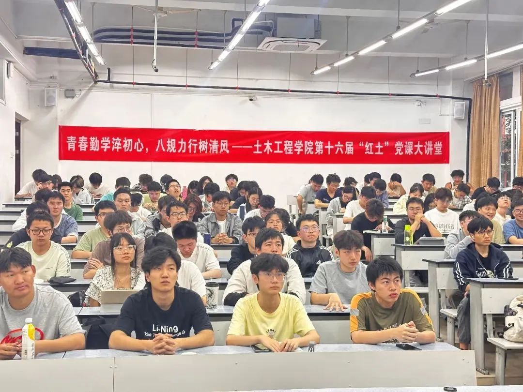 精心组织了系列党日活动:“红土”党课大讲堂,深学理论知识;支部联建共学,拓宽党员视野;红色教育基地实践,追寻革命足迹;党员责任寝室,强化组织建设。这些活动形式丰富,聚焦发挥党员先锋作用,涵盖理论学习、实践锻炼、红色教育等多个方面,充分展现了土木学子的党员风采,为校庆增添了浓厚的红色氛围。
