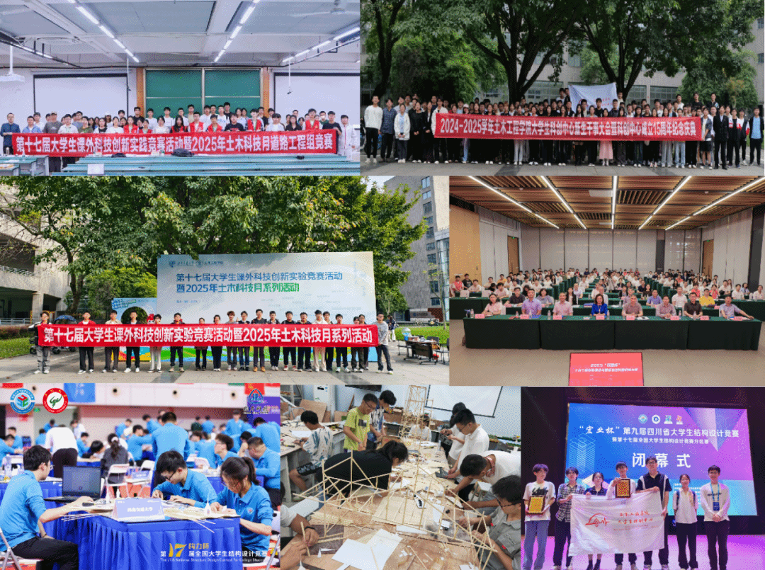 的全体科创竞赛者、2025土木科技月所有参与者以精彩纷呈的系列赛事、优异的竞赛成果向交大建校129周年献礼!无数构思精巧的模型、一位又一位激情四射的竞赛者,彰我土木之风采,扬我交大之精神。争办一流学科竞赛,培育万千创新英才; 艳母