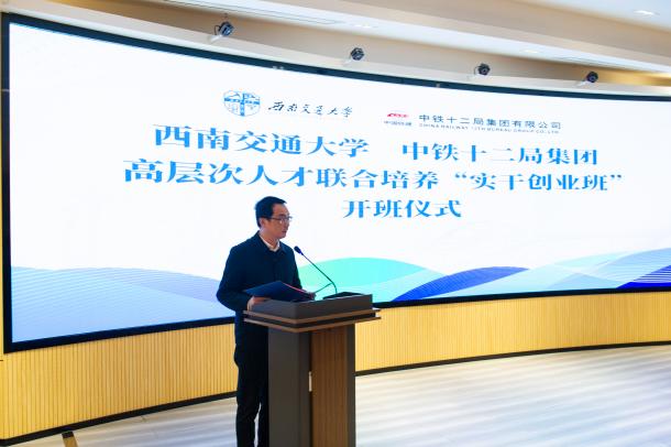 12月3日下午,学校与中铁十二局集团在犀浦校区“双一流”会议中心数字孪生互动教学中心举行高层次人才联合培养“实干创业班”开班仪式。中铁十二局集团党委委员、副总经理王栋,西南交通大学党委副书记高平平出席会议并致辞。中铁十二局集团公司党委干部部部长、人力资源部总经理赵宏旺,党委干部部副部长、人力资源部副总经理王喜波, 艳母