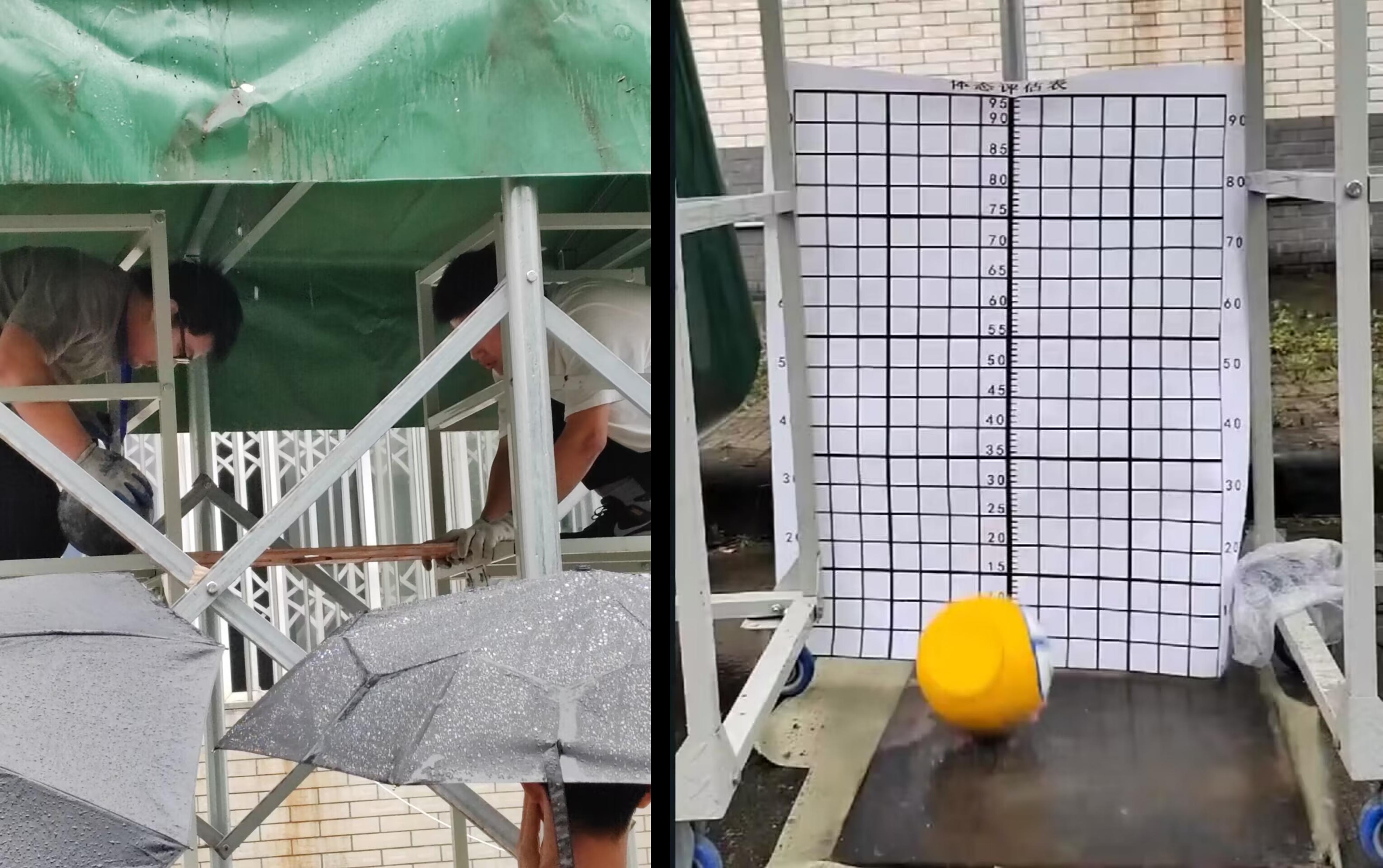 尽管现场阵雨不断,试验条件艰苦,但在各成员的配合协调下,选手们顺利完成了试验。在试验过程中,我们欣喜地看到,较之往年,选手的美化打磨水平及球弹高度有了进一步的提升。这充分说明选手们在这次比赛中,不仅在技术层面有所突破,更展现了他们良好的团队精神和竞赛意识。