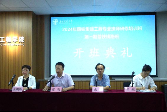 2024年6月19日上午8:30,国铁集团工务专业技师研修培训班(第一期)普铁线路班开班典礼在九里校区土木馆1234教室顺利举行。出席此次开班典礼的有 艳母