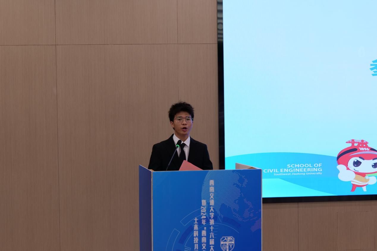 周书记肯定了土木科技月创办以来取得的各种成就以及为学校和学院取得的荣誉,衷心祝愿同学们能够在本次2024年土木科技月的活动赛事中取得更优异的成绩。同时,周书记对学校教务处和资实处等相关部处,以及四川西南交大土木工程设计有限公司的大力支持表示感谢。