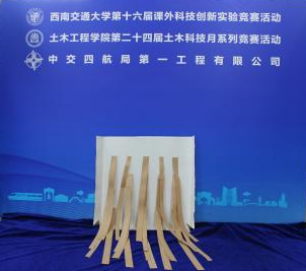 本次竞赛的赛题为“加筋挡土墙(MSE)模型”,要求参赛小组制作的挡土墙模型能够抵抗拉筋尾部后面填土所产生的一定的侧压力。此次比赛由陈述答辩、现场组装、实际加载三部分构成。