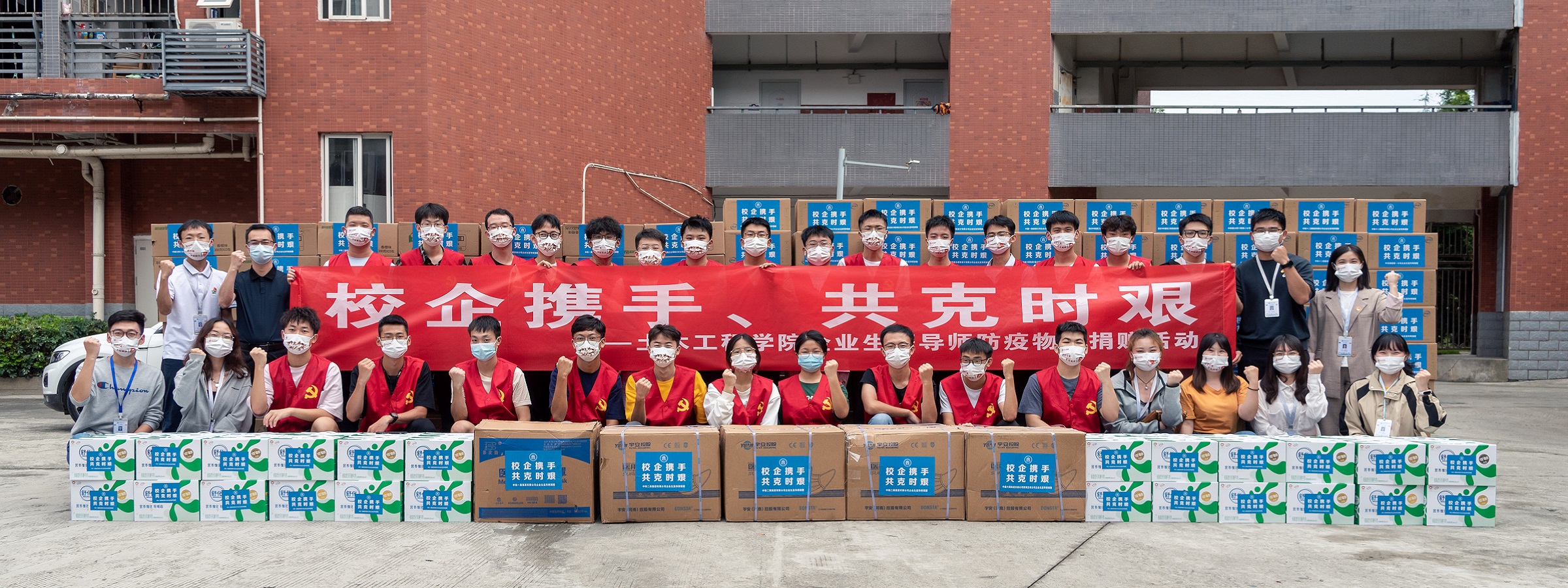 中铁五局及中铁大桥院校友为 艳母 全体学生捐赠饭盒及防疫物资